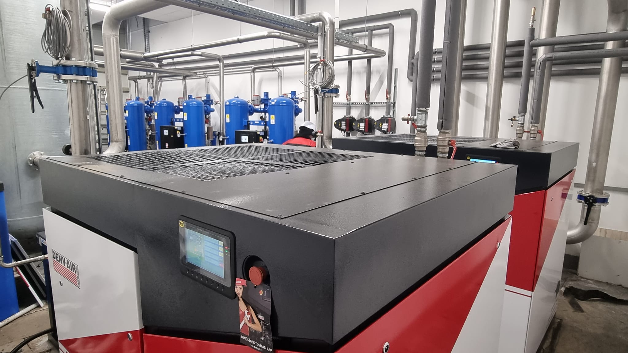 Szabó Zsolt kollégánk újabb szép eladása Debrecenbe a Peka Bau Kft.-nek. Referencialistánk így három darab új 75 kW-os DENV-AIR DAPM kompresszorral bővült, mindegyik beépített hőhasznosítóval. A rendszer kiegészítve három nagy OMI melegregenerálású adszorpciós szárítóval.és szűrősorral. A kompresszorok tökéletesen működnek, részünkröl indulhat a gyártás!